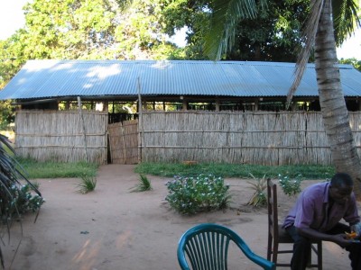This church building is in Helene (a 6-hour drive from Maputo on Mozambique's main national highway), where Kevin visited in January to teach on church leadership and do some preaching. The man eating a mango in the lower right is Ernesto, a Christian brother and Kevin and Mindy's handyman. He goes along on such trips for added safety, and his mechanical knowledge is invaluable in the event of a roadside breakdown. |