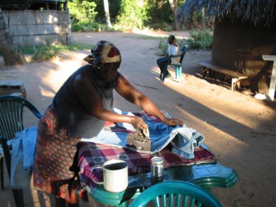 During the four days Kevin was there, some ladies of the church hand-washed his clothes for him (they insisted). Here, one of them presses a pair of jeans with an iron full of hot coals. |