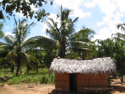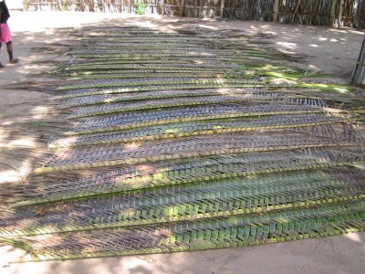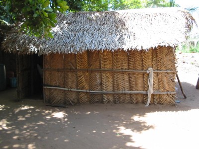 And here you see a little house whose walls and roof are made from dried palm tree leaves. |